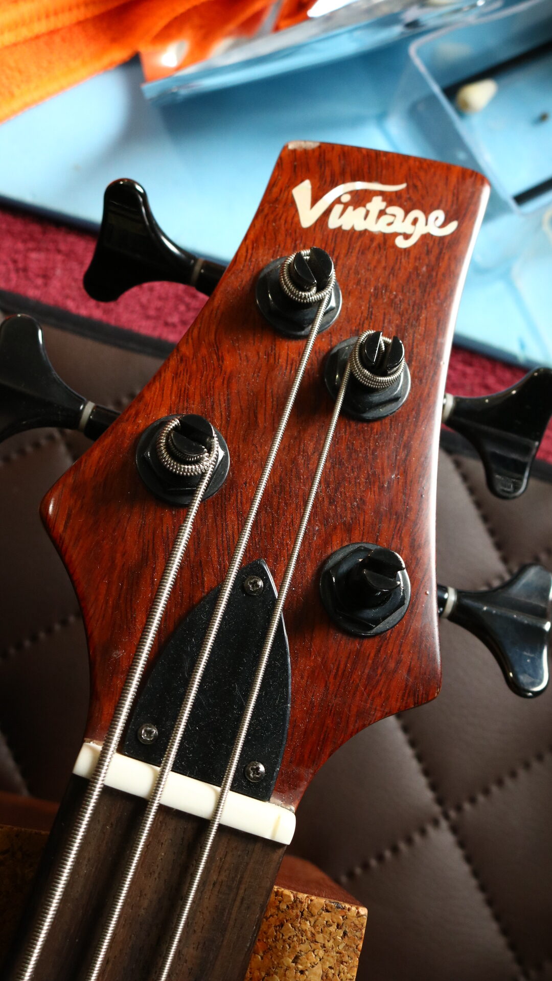 Oczywiście gitary basowe traktujemy z równą pieczołowitością jak “zwykłe” gitary elektryczne, Trafił nam się basik Vintage V804B… nie było dużo roboty. Wymiana popsutego klucza, czyszczenie i pełny setup instrumentu… przy okazji sprawdziliśmy nowy olejek pomarańczowy do podstrunnicy od Lizard Spit i gąbeczki to polerowania progów od tego samego producenta. A sam basik niezły, choć ktoś grzebał wcześniej w elektronice i troszkę skopał układ – właściciel postanowił to na razie tak zostawić, to zagadał spoko. no i pierwszy klient co zamówił wysoką akcje strun… Prawdziwy twardziel 😉